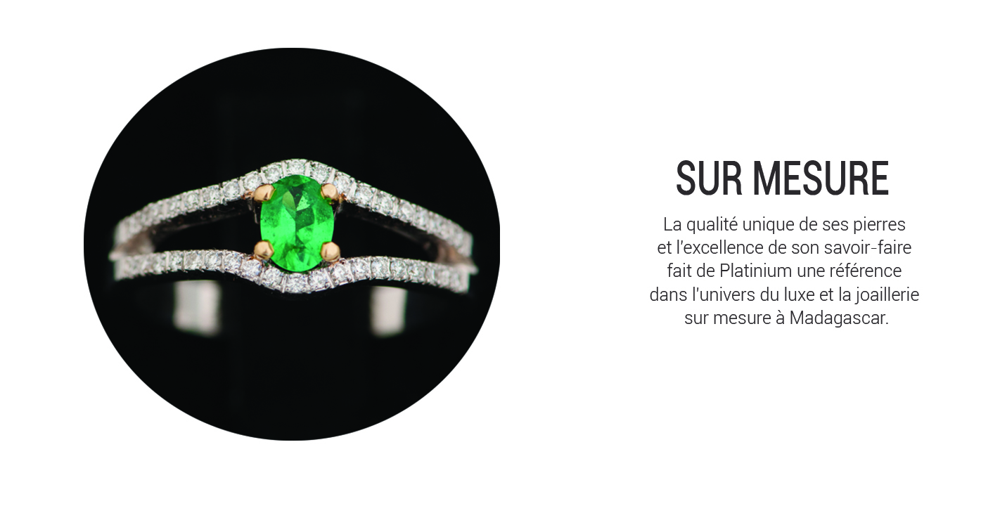 Madagascar est riche en pierre precieuse, chez Platinium vous pouvez commander des bijoux avec vos pierres favorites ou celle de votre mois de naissance (Pierre d'exceptions, Expertise idépendante)